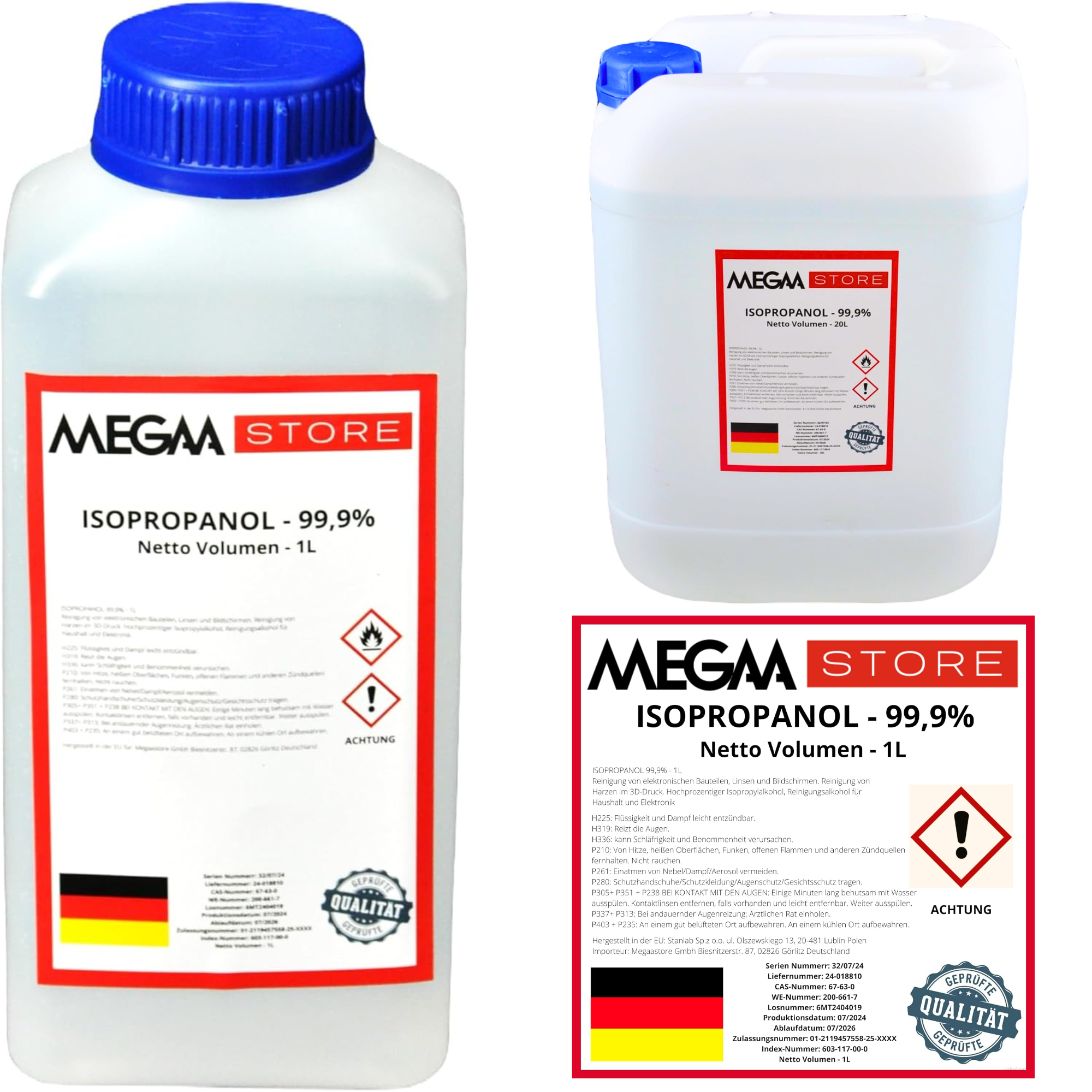 Isopropanol – Isopropylalkohol 99.9% | Entfetter Lösungsmittel 1L bis 20L | für Elektronik Haushalt Automobil optische Elemente Linsen