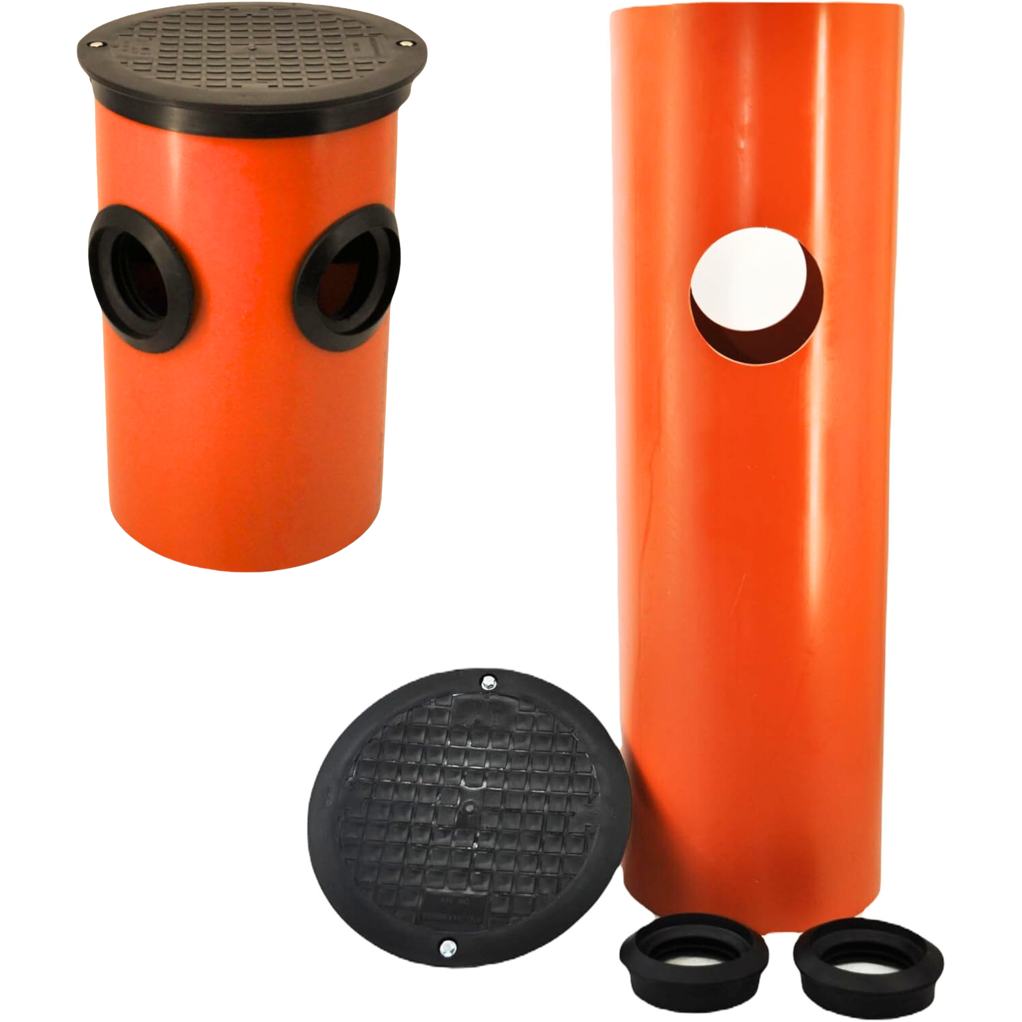 Megaastore KG Rohr Abwasserrohr DN315 0,5m-1m mit 1/2/3/4 Anschluss DN110/DN160 Manschette Drainageschacht Deckel Sickerschacht KG Schacht Kontrollschacht