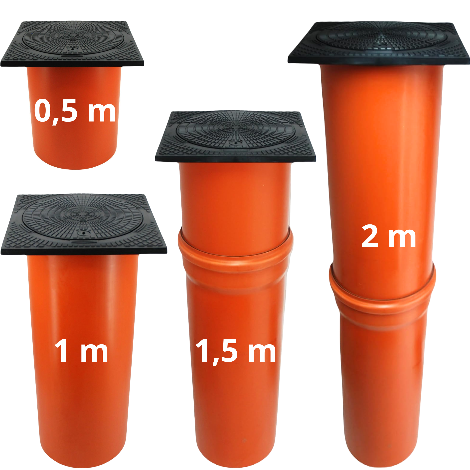 Megaastore Rohr DN315, DN400 mit Deckel A15-1,5 tonne | 0,5m bis 2m | Schachtabdeckung KG Steigrohr Schachtrohr quadratisch geschlossen (50 x 50 cm)